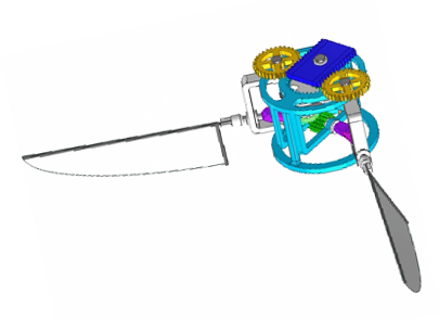 CAD model for one-DOF flapping/feathering mechanism (Mihara model):